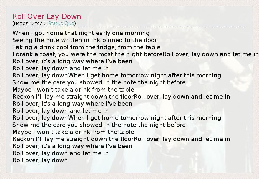 А как ты думаешь, о чем песня "Roll Over Lay Down" ?