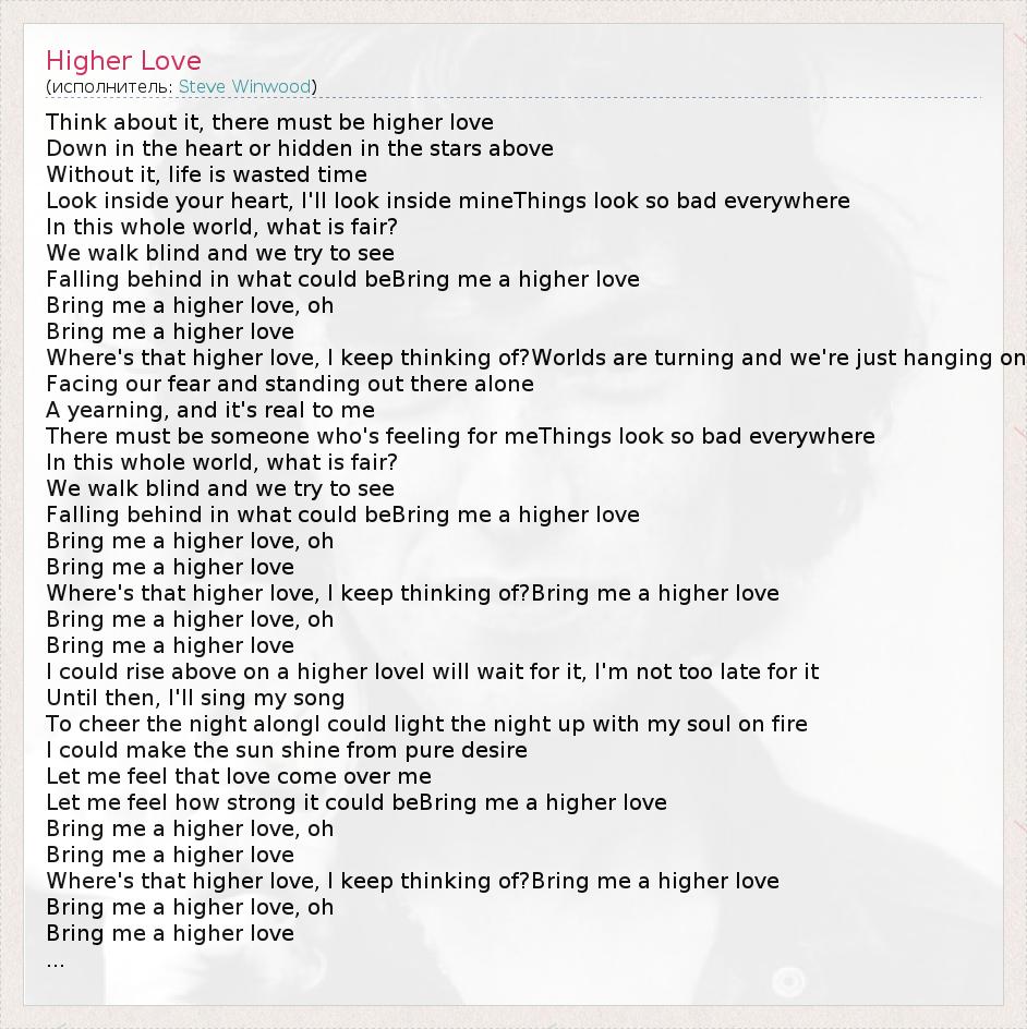 Where's that higher love, I keep thinking of?Bring me a higher love