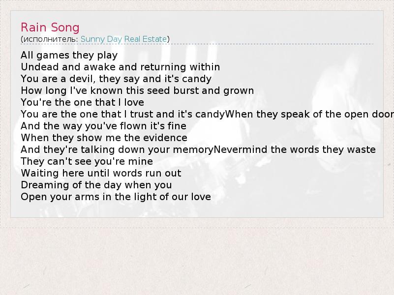 А как ты думаешь, о чем песня "Rain Song" ?