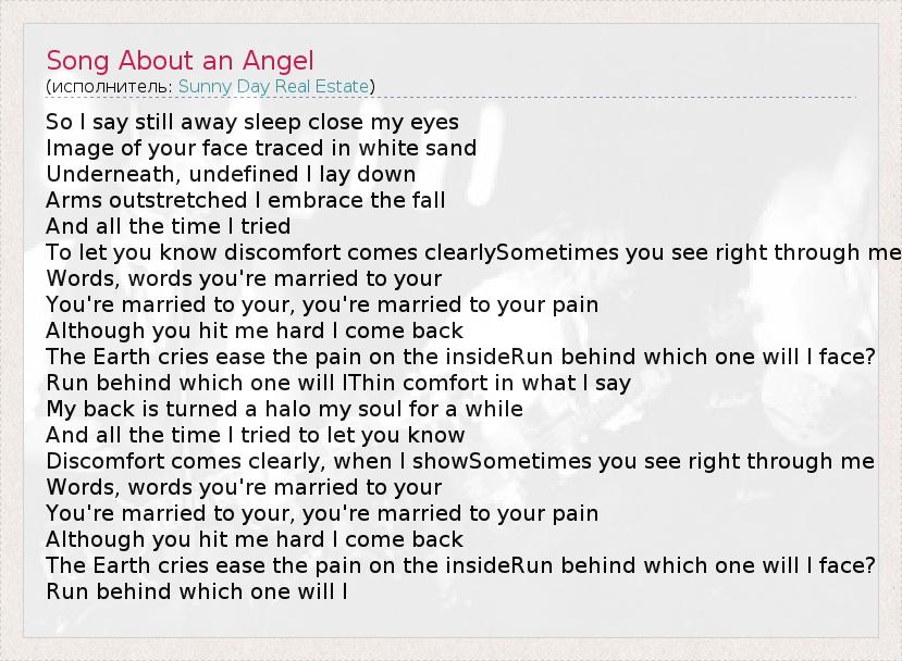 А как ты думаешь, о чем песня "Song About an Angel" ?
