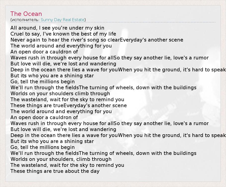 Deep in the ocean there lies a wave for youWhen you hit the ground, it's hard to speak