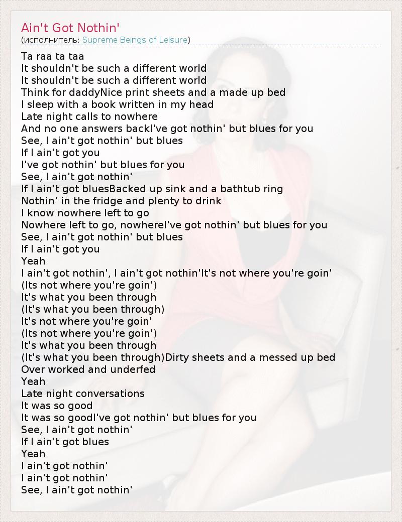 А как ты думаешь, о чем песня "Ain't Got Nothin'" ?