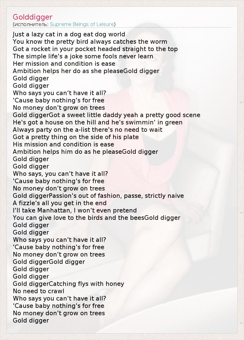 Gold diggerGot a sweet little daddy yeah a pretty good scene