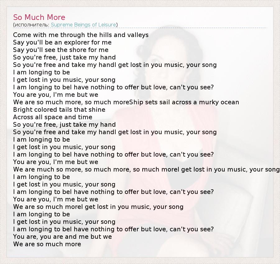We are so much moreI get lost in you music, your song