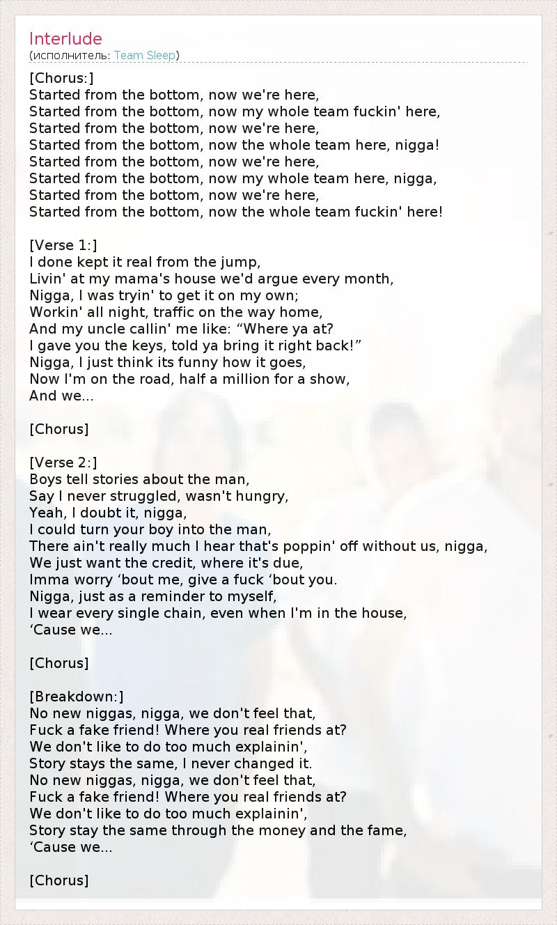 Started from the bottom, now my whole team here, nigga,