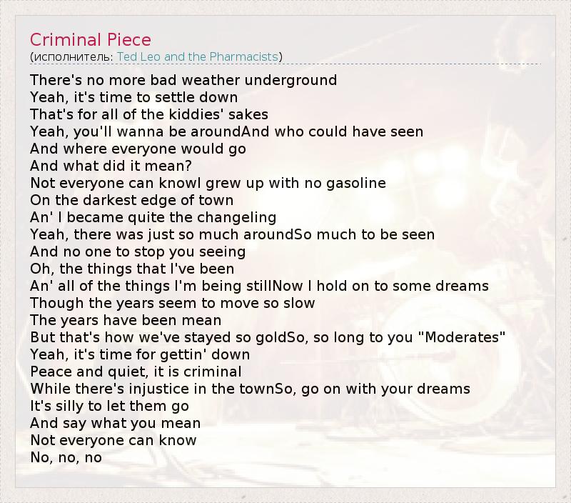 А как ты думаешь, о чем песня "Criminal Piece" ?
