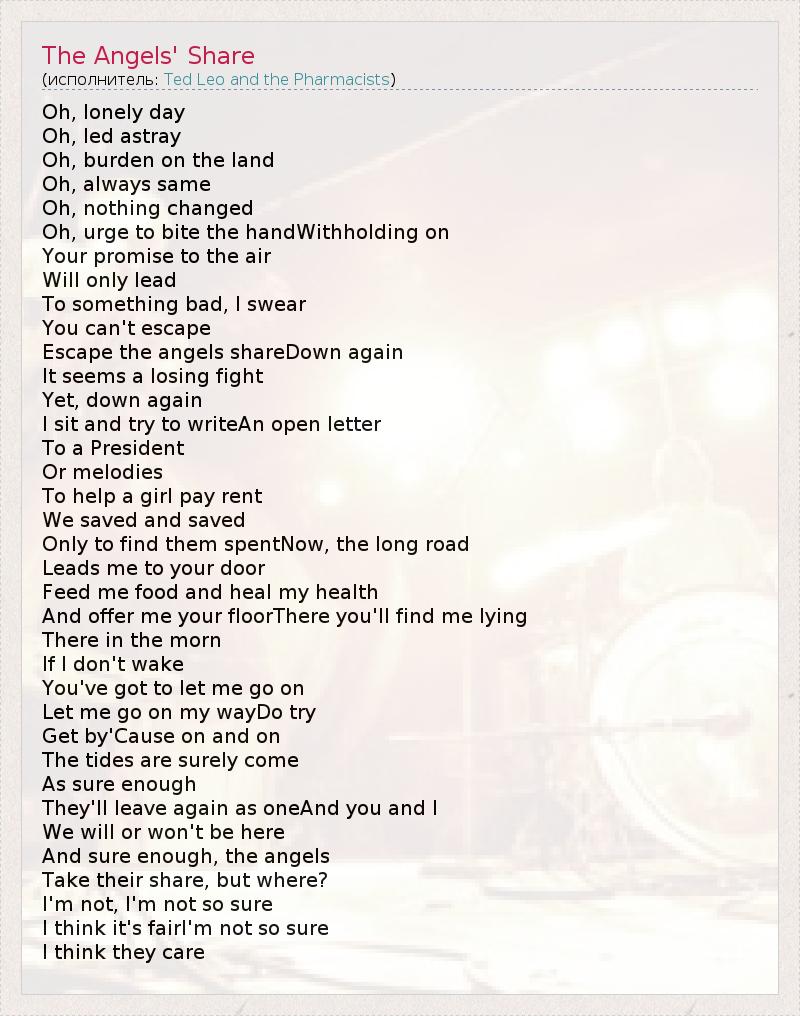 А как ты думаешь, о чем песня "The Angels' Share" ?