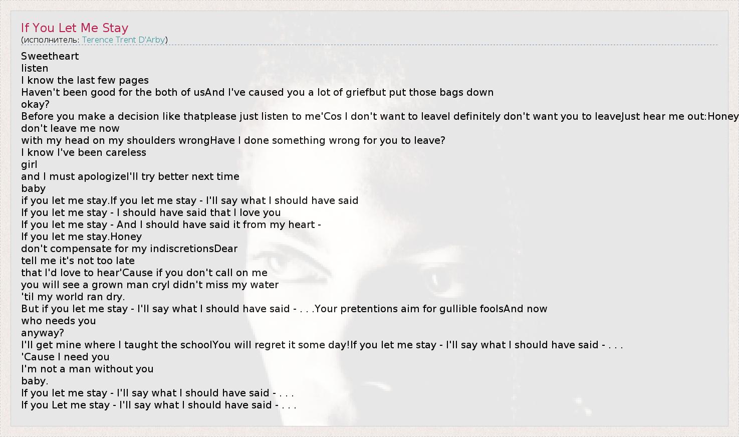 А как ты думаешь, о чем песня "If You Let Me Stay" ?