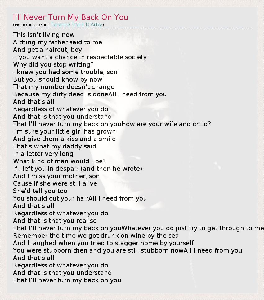 ГлавнаяИсполнителиTerence Trent D'ArbyI'll Never Turn My Back On You