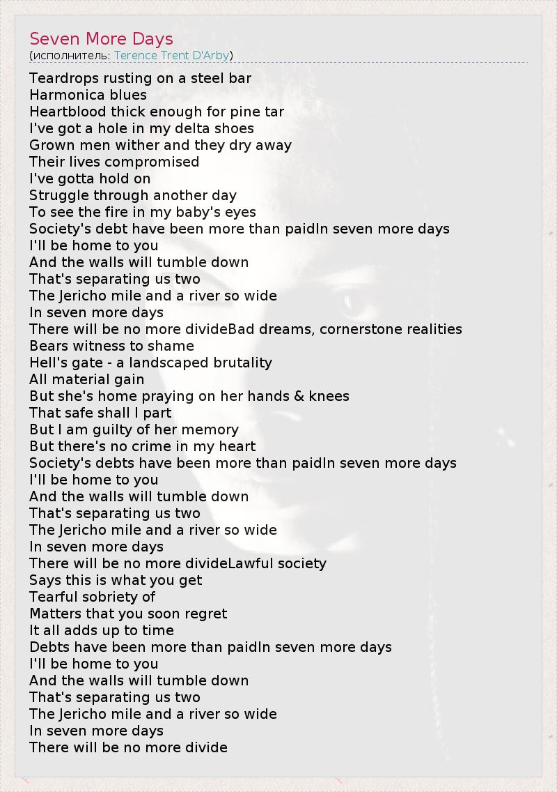 А как ты думаешь, о чем песня "Seven More Days" ?