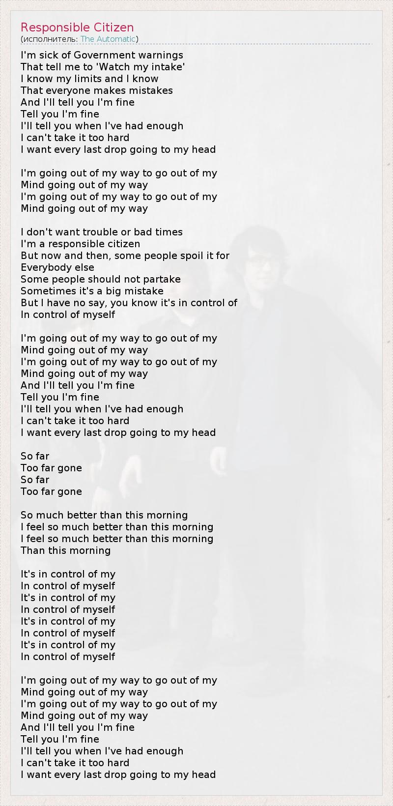 А как ты думаешь, о чем песня "Responsible Citizen" ?