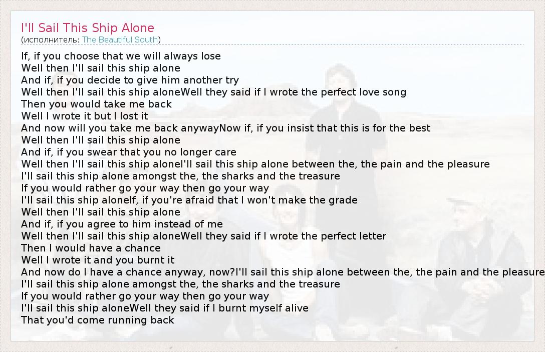 А как ты думаешь, о чем песня "I'll Sail This Ship Alone" ?