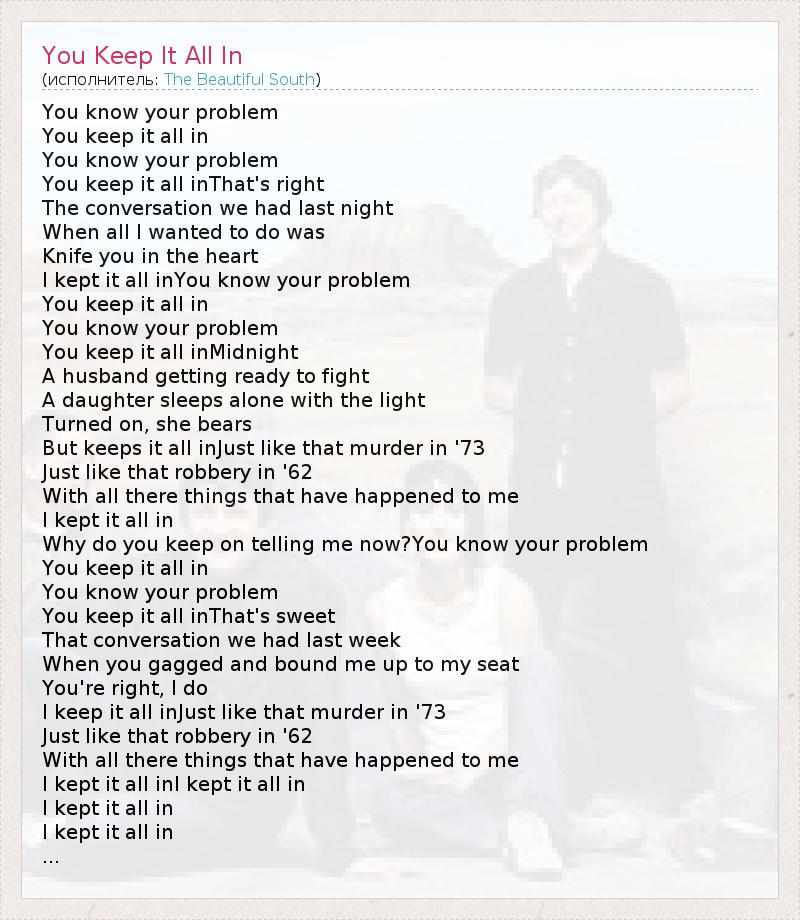 А как ты думаешь, о чем песня "You Keep It All In" ?