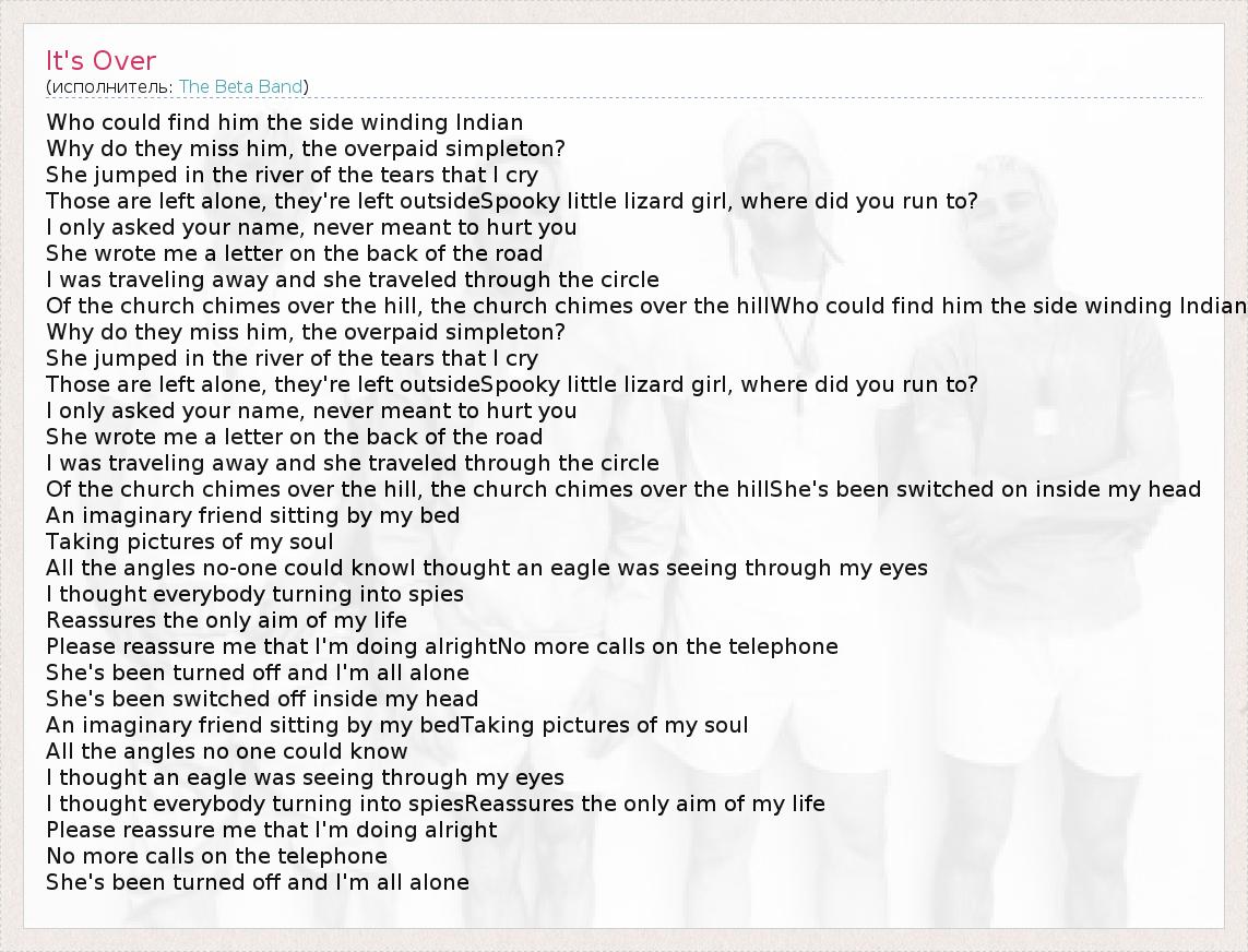 А как ты думаешь, о чем песня "It's Over" ?