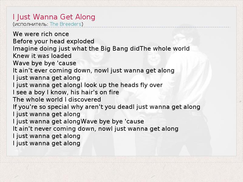 А как ты думаешь, о чем песня "I Just Wanna Get Along" ?