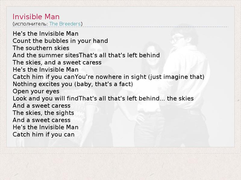 А как ты думаешь, о чем песня "Invisible Man" ?