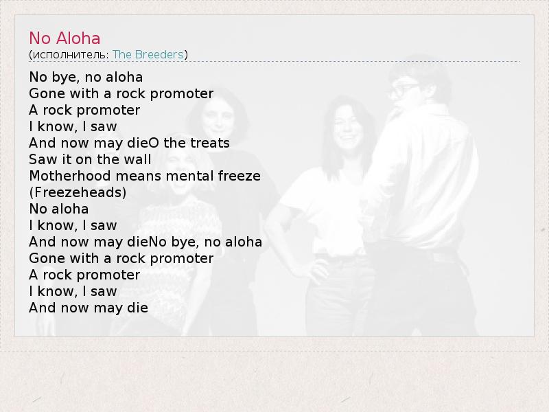 Это интересно:Группа The Breeders была основана в 1990 году в американском городке Дейтон, штат Огайо. Состав группы: Kim Deal (бас, вокал), Tanya Donelly (гитара, вокал), Josephine Wiggs (бас, виолончель, вокал), Jim MacPherson (ударные), Britt Walford (ударные, под ником Shannon Doughton), Kelley Deal (гитара, вокал).Изначально The Breeders была создана басисткой группы... продолжение