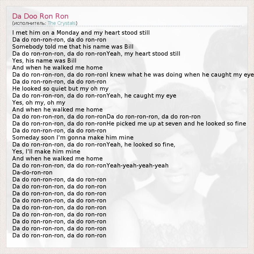 Da do ron-ron-ron, da do ron-ronYeah, my heart stood still