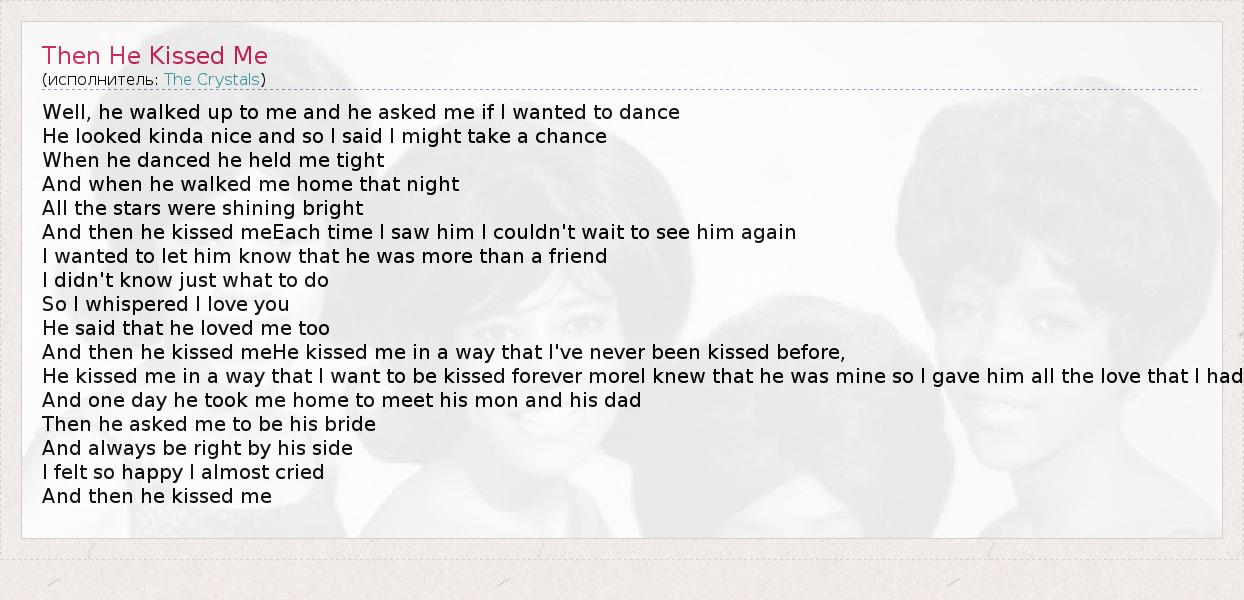 А как ты думаешь, о чем песня "Then He Kissed Me" ?