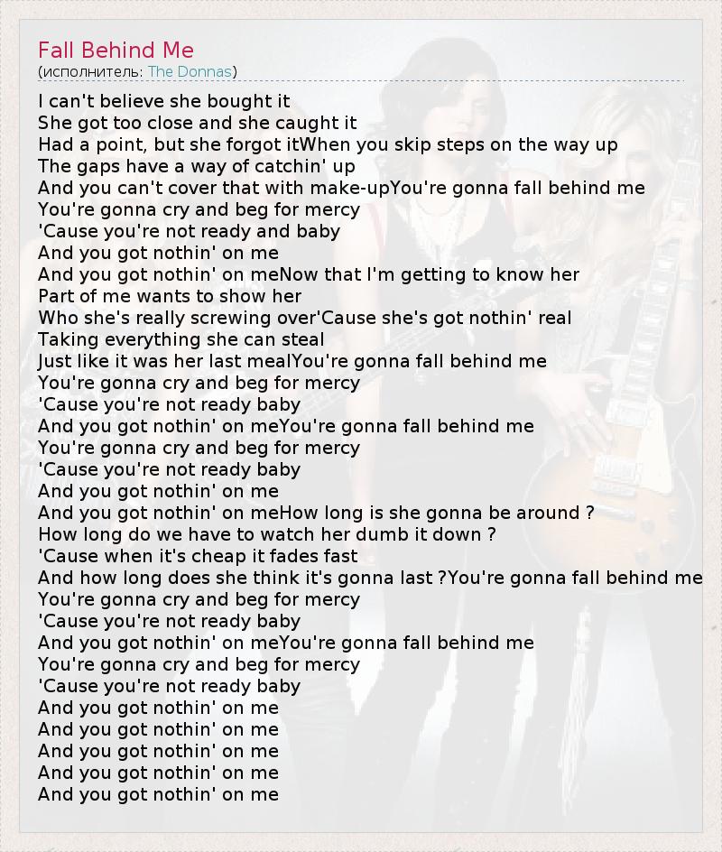 А как ты думаешь, о чем песня "Fall Behind Me" ?