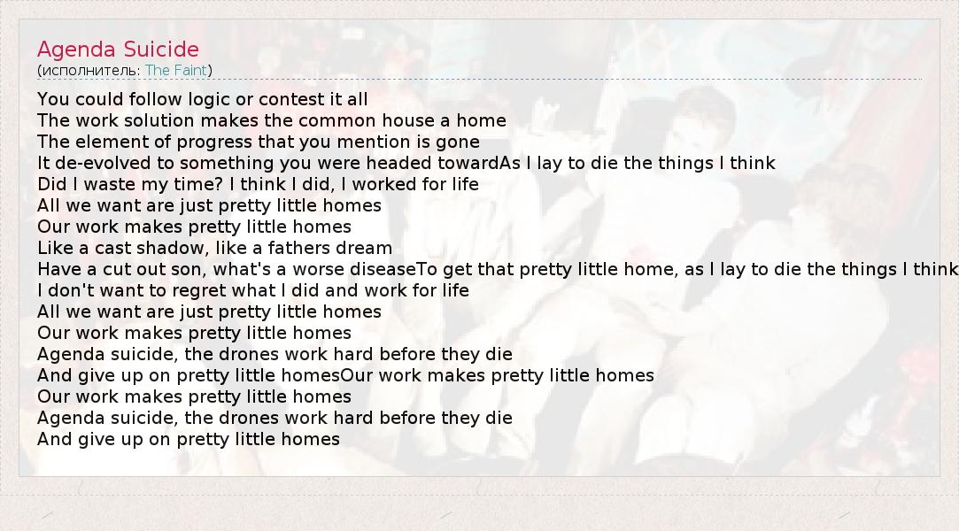 А как ты думаешь, о чем песня "Agenda Suicide" ?