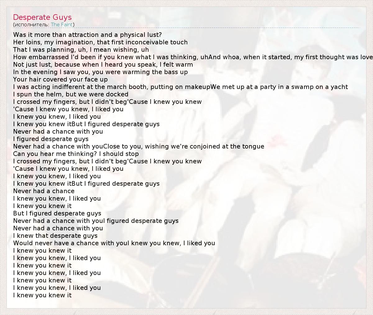 А как ты думаешь, о чем песня "Desperate Guys" ?