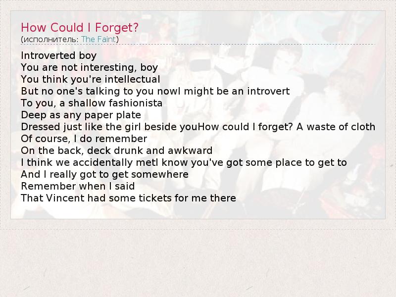 А как ты думаешь, о чем песня "How Could I Forget?" ?