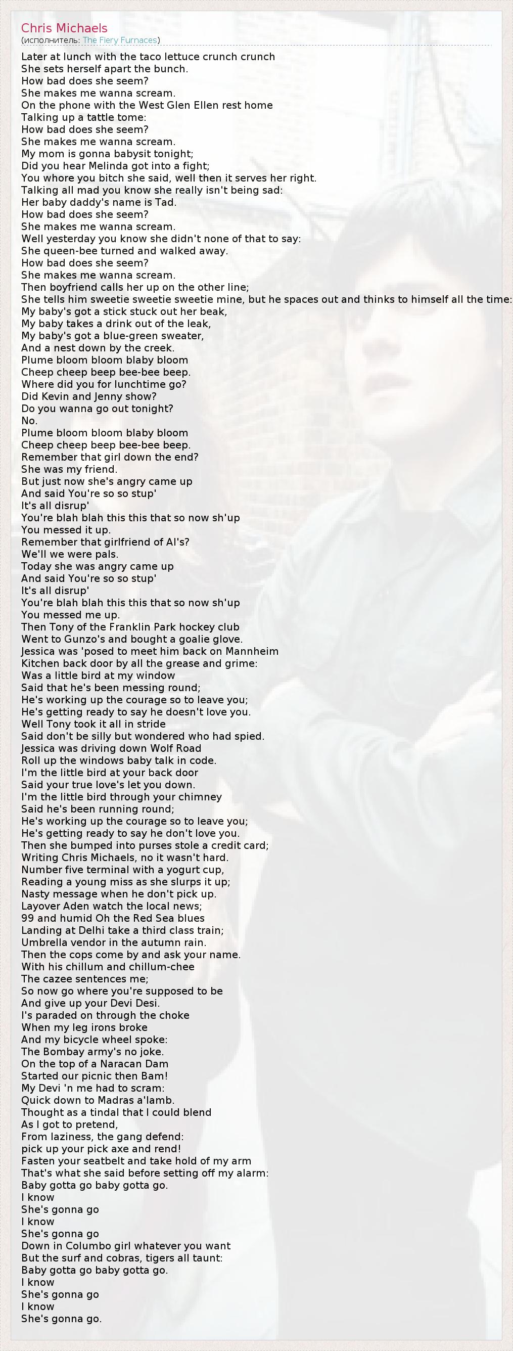 А как ты думаешь, о чем песня "Chris Michaels" ?