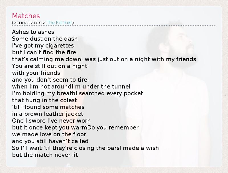 А как ты думаешь, о чем песня "Matches" ?