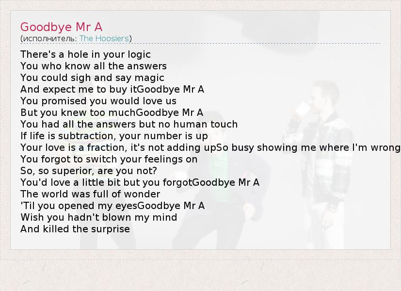 А как ты думаешь, о чем песня "Goodbye Mr A" ?