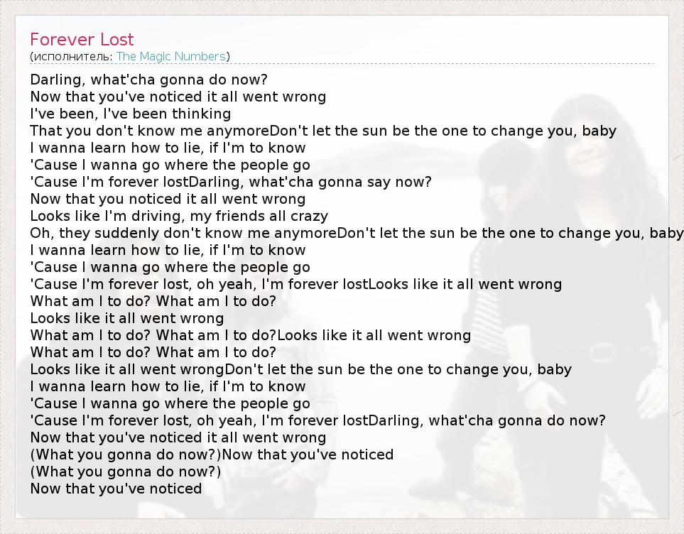 'Cause I'm forever lost, oh yeah, I'm forever lostLooks like it all went wrong
