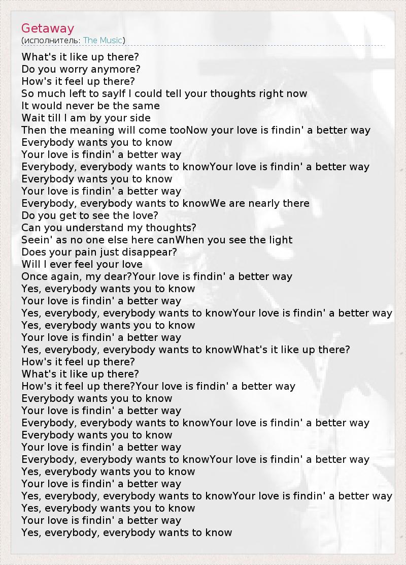 Yes, everybody, everybody wants to knowYour love is findin' a better way