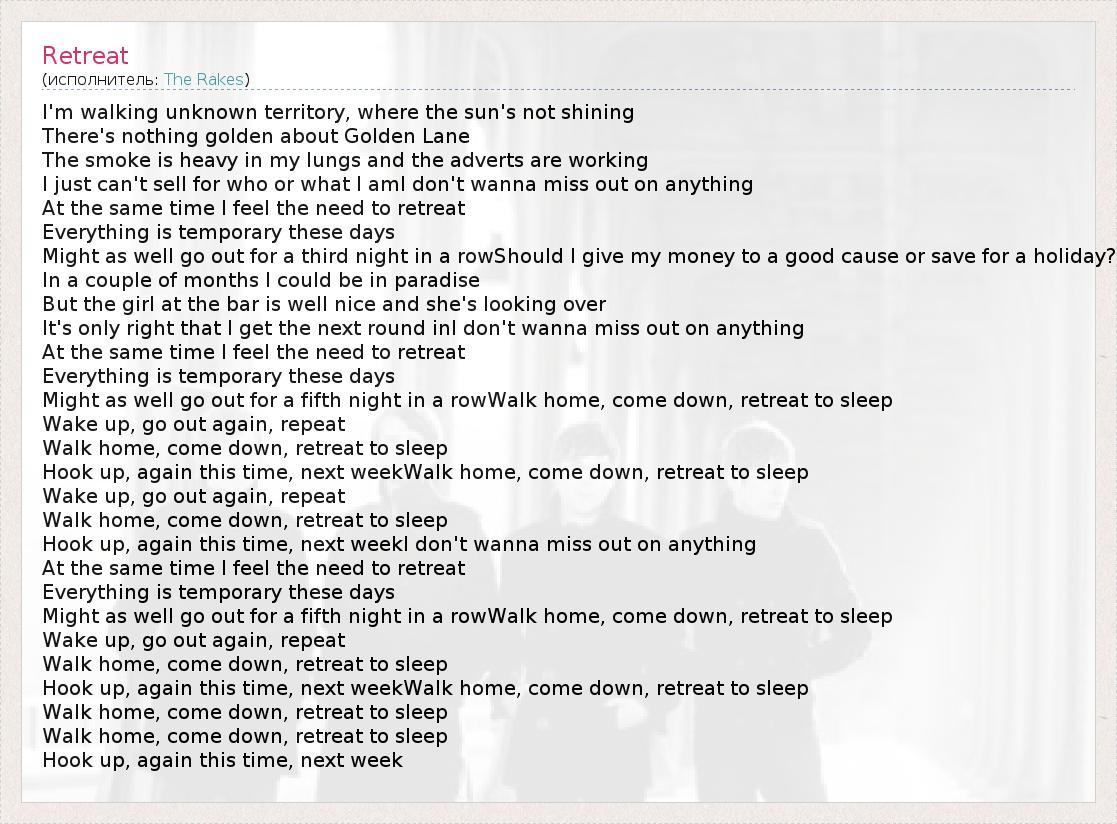 Might as well go out for a fifth night in a rowWalk home, come down, retreat to sleep