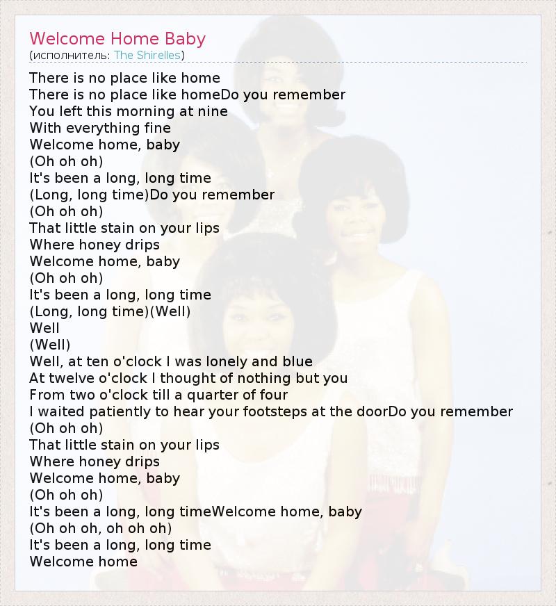 А как ты думаешь, о чем песня "Welcome Home Baby" ?
