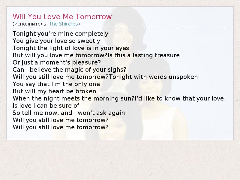 А как ты думаешь, о чем песня "Will You Love Me Tomorrow" ?