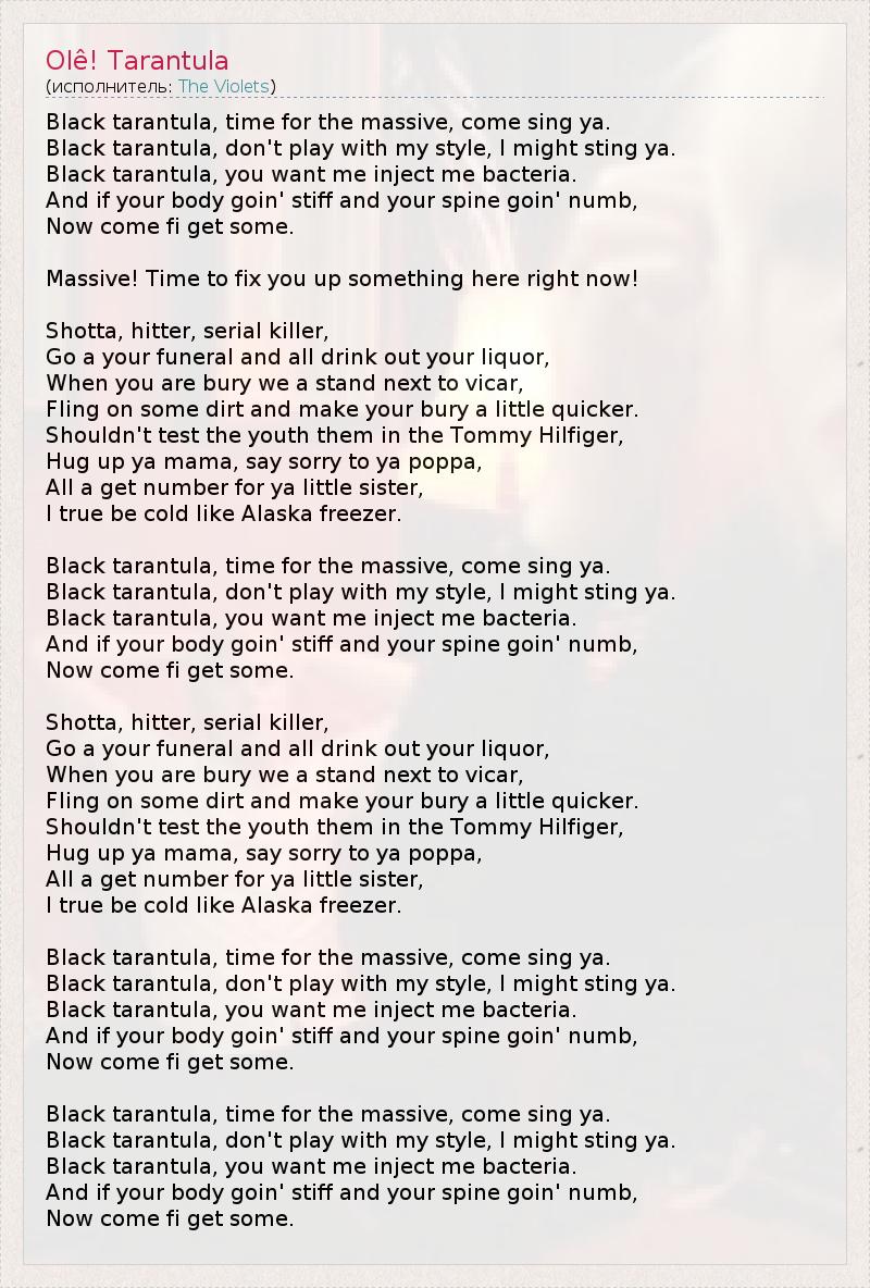 А как ты думаешь, о чем песня "Olê! Tarantula" ?
