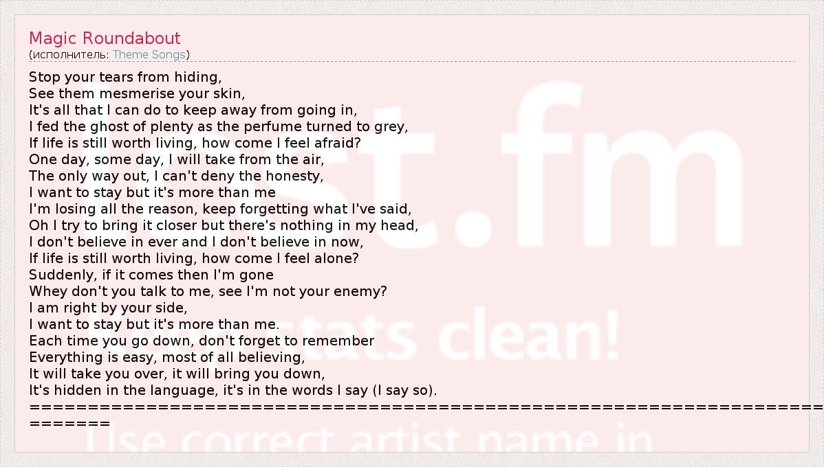 А как ты думаешь, о чем песня "Magic Roundabout" ?