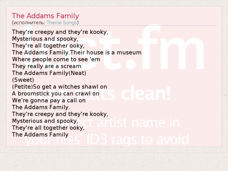 А как ты думаешь, о чем песня "The Addams Family" ?