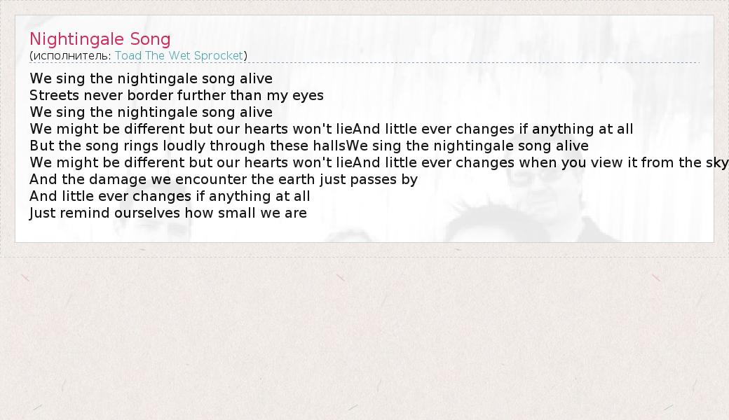 А как ты думаешь, о чем песня "Nightingale Song" ?
