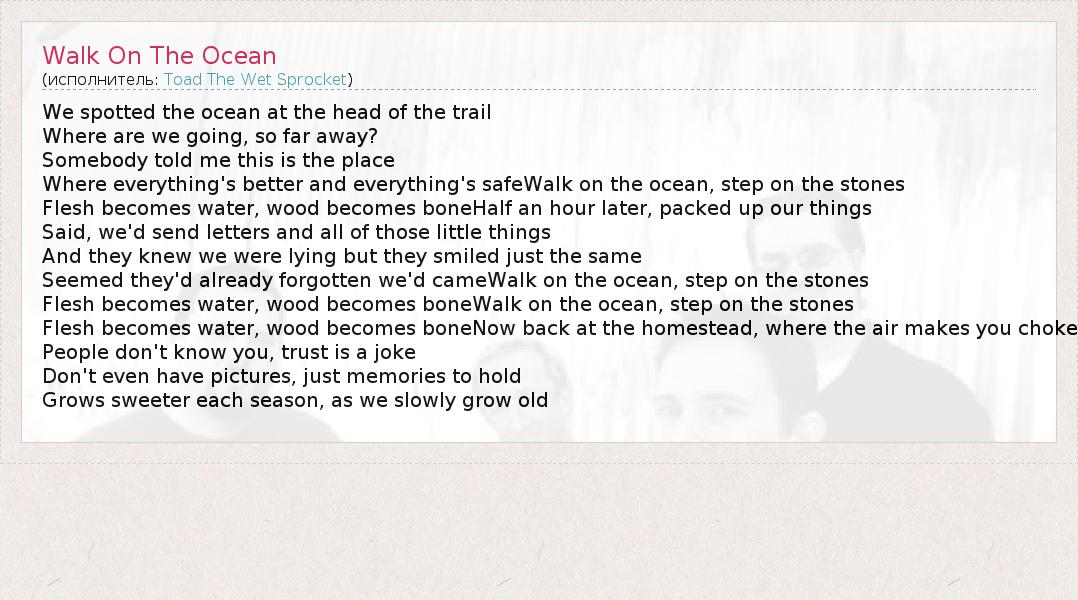А как ты думаешь, о чем песня "Walk On The Ocean" ?
