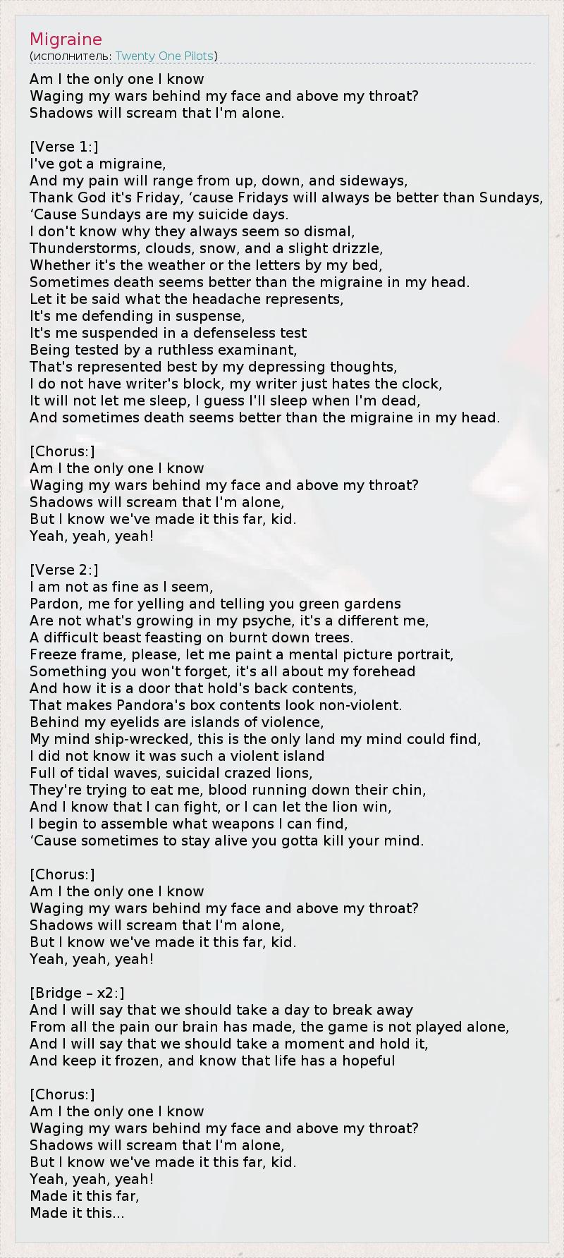 А как ты думаешь, о чем песня "Migraine" ?