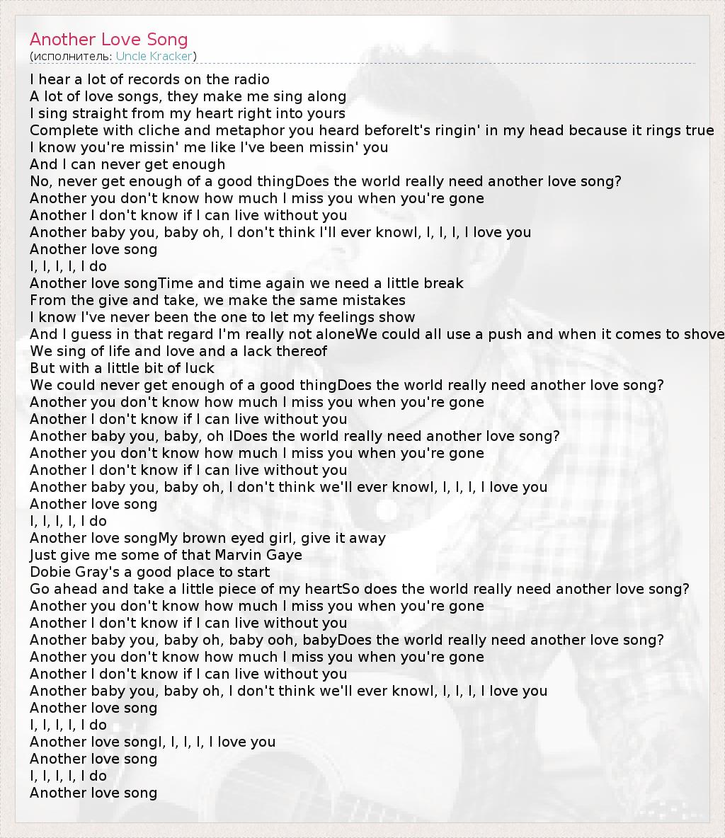 А как ты думаешь, о чем песня "Another Love Song" ?