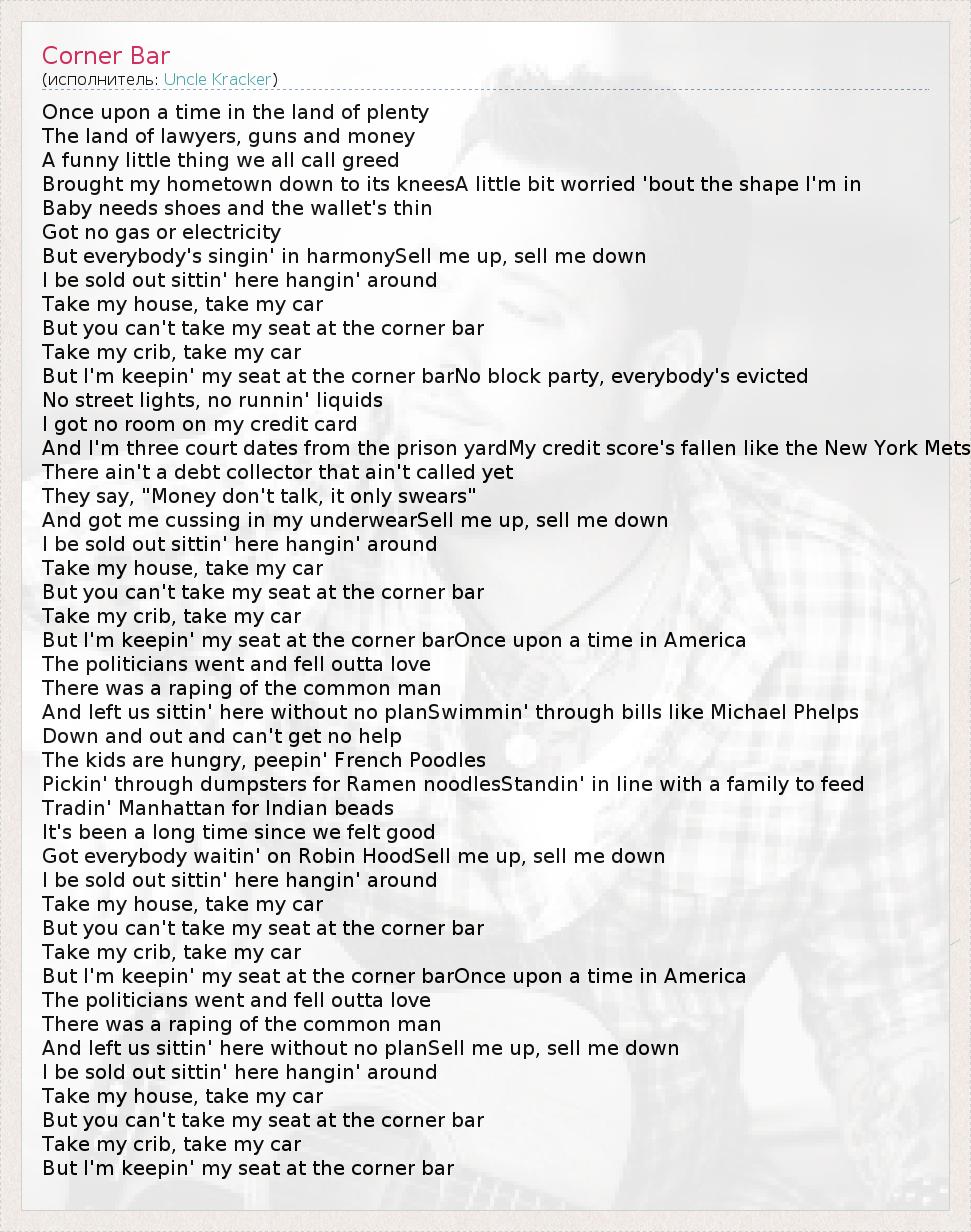 А как ты думаешь, о чем песня "Corner Bar" ?