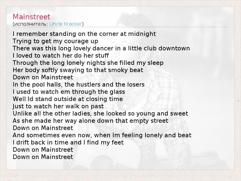 А как ты думаешь, о чем песня "Mainstreet" ?