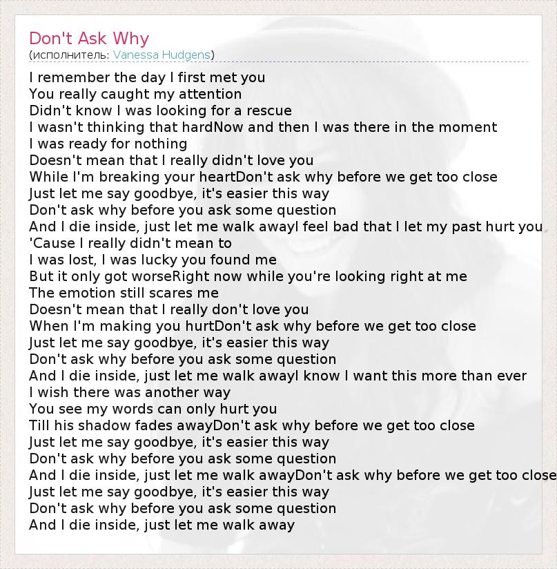 А как ты думаешь, о чем песня "Don't Ask Why" ?
