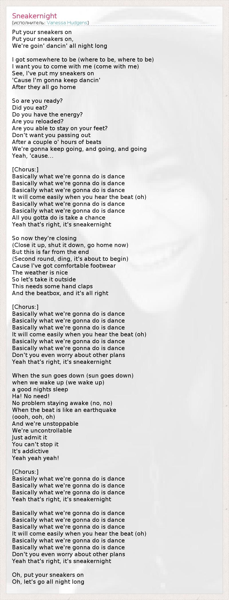 А как ты думаешь, о чем песня "Sneakernight" ?