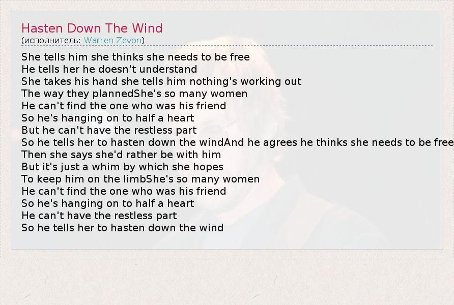 А как ты думаешь, о чем песня "Hasten Down The Wind" ?