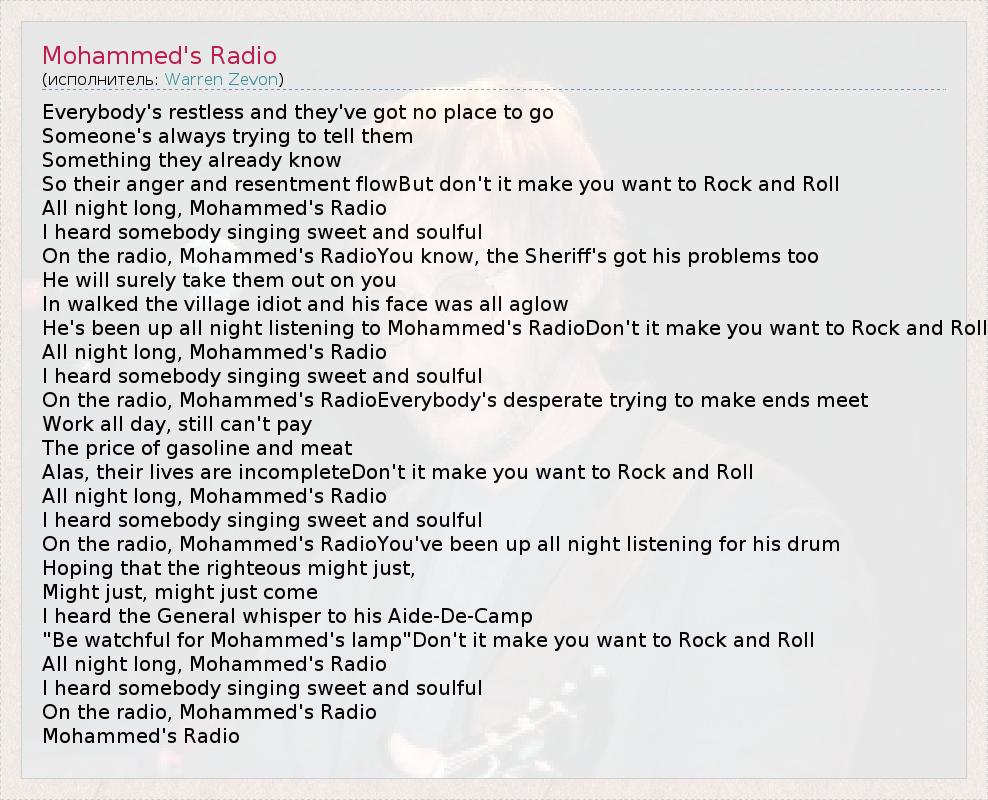 А как ты думаешь, о чем песня "Mohammed's Radio" ?