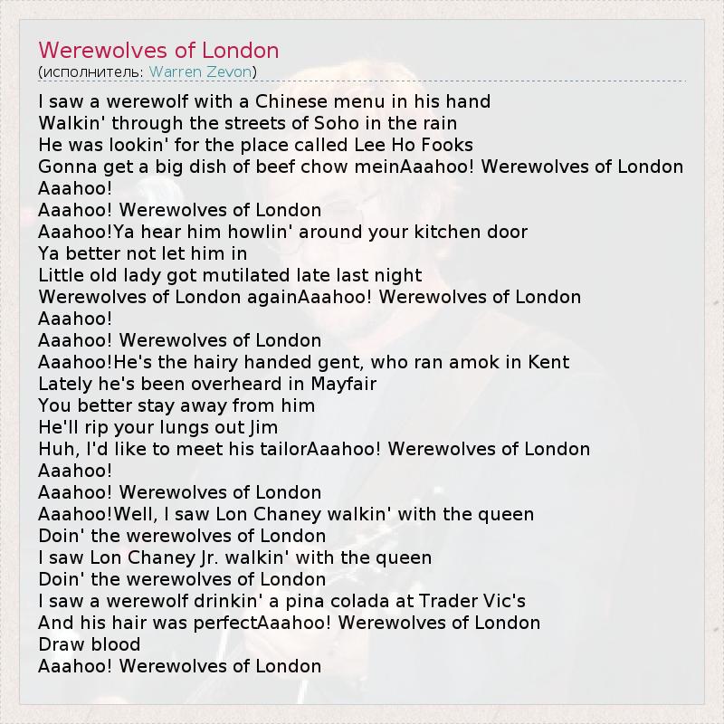 А как ты думаешь, о чем песня "Werewolves of London" ?