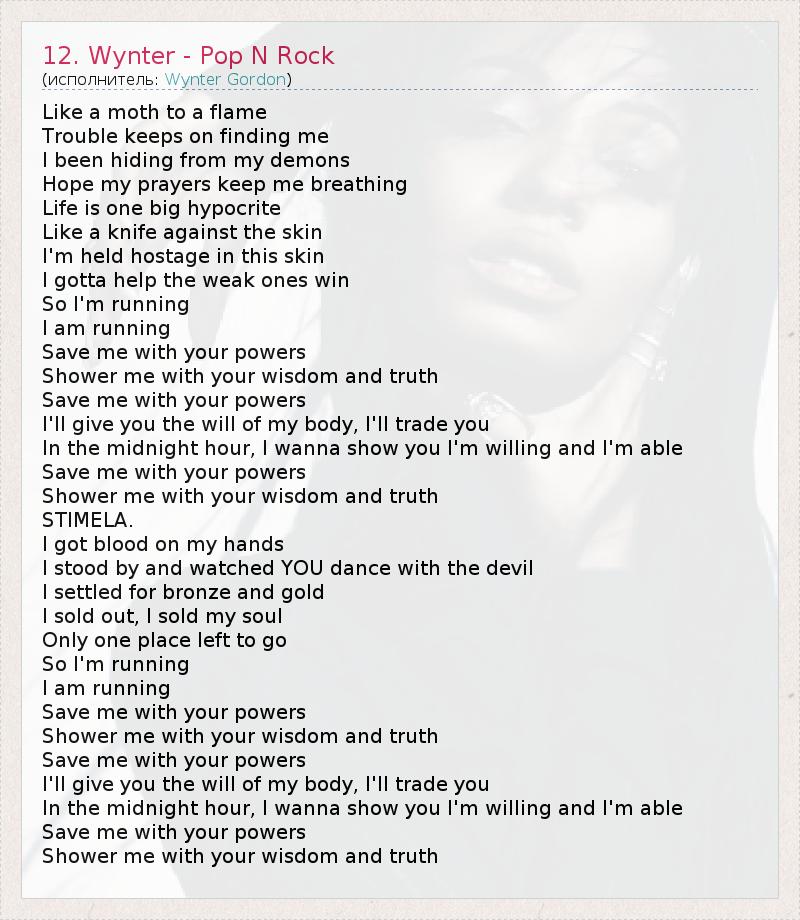 А как ты думаешь, о чем песня "12. Wynter - Pop N Rock" ?